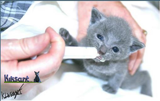 Cuando nuestro pequeño AZUL RUSO llega a nuestra casa, nunca se le debe dar leche como las que tomamos los humanos; los criadores ya les orientan que clase de alimentación se les debe dar. Cuando son muy pequeños si alguno necesita ayuda porque está más retrasado en su crecimiento, se les administra LECHE ESPECIAL PARA BEBES FELINOS